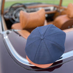 Discover the Striped Theo: a cool classic Newsboy cap in lightweight navy blue feather stripe worsted wool with a contrast butter-soft tan leather peak. There's a stud button for it to be snapped up or swung sideways to suit your mood. Looking dapper has never been easier, dressed up or down.
